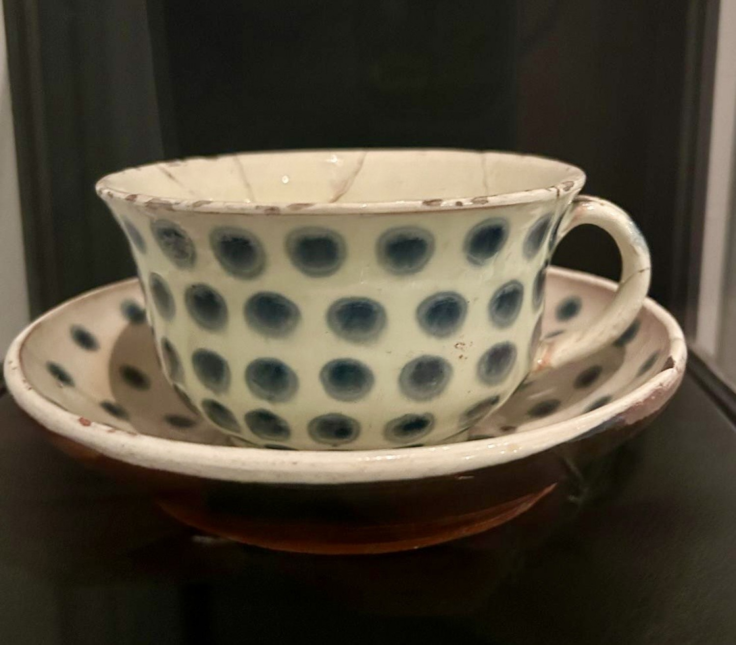 The cup and saucer was used by William Morris at The Grange, the Burne-Jones’ Fulham house, where he kept it especially for his own use when he dined there because he objected to the small size of the Burne-Jones’ coffee cups.
