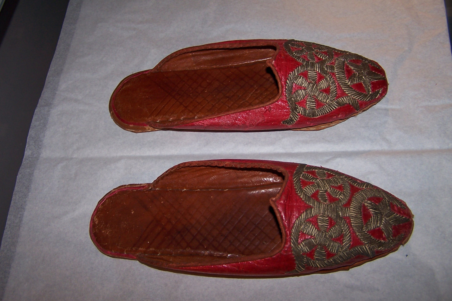 These slippers were possibly acquired by May or Jane Morris during their trip to Egypt in 1896-97, but more likely by May during a solo trip to Morocco in 1911. May departed England in October 1911 for a three week trip on the H.M.P.S Agadir to Madeira and the coast of Morrocco. The slippers were donated to the Royal Albert Memorial Museum, Exeter in 1939 after May’s death by Mary Lobb, May Morris’s companion, and were part of a larger collection of mainly Icelandic material. The collection was transferred to the William Morris Gallery in 2012.