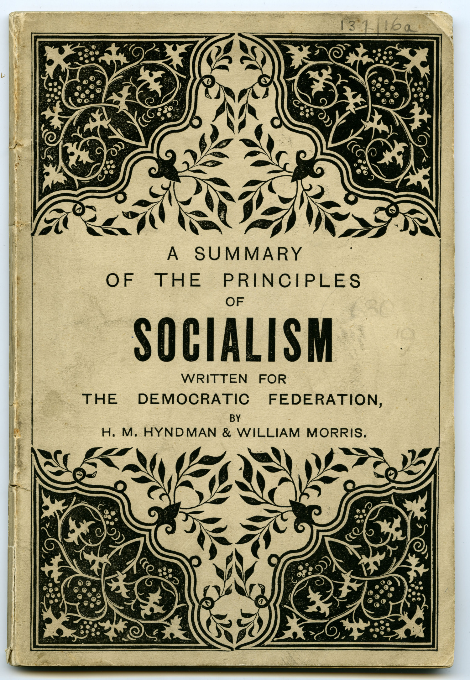 This pamphlet was written by William Morris and Henry Hyndman for the Social Democratic Federation, Morris also designed the title page. Morris had always felt uneasy about the disparity between his comfortable lifestyle and the conditions endured by most of the British working classes. In the 1880s he began working towards overthrowing the system that enabled the rich to profit from their labour, going on marches, writing articles and lecturing all over the country.