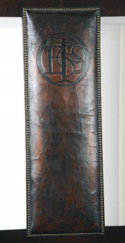Designed for the Essex and Suffolk Equitable Insurance company, Capel House, New Broad Street, London, E.C.2. The client who commissioned the work from Voysey on the Company’s behalf was S.C. Turner, for whom Voysey had designed The Homestead in Second Avenue at Frinton-on-Sea, Essex in 1905. The contractor for the work was F. Muntzer, a friend and pupil of Voysey. A perspective design view of the Board Room in the V&A Museum London shows the set of board-room chairs of which a third is in the V&A. Voysey described the scheme in ‘The Builder’, 1909: “We put in new windows, doors, fireplaces and floors and furnished the offices; everything being designed by me, even the calendars, ink-stands, pen tray etc. The principle we worked on was to have everything durable, and minimise the cleaning as much as possible. Thus the upkeep is reduced to a minimum. All the woodwork and furniture is in oak, left in its natural colour…” The present dark stain was added subsequently.