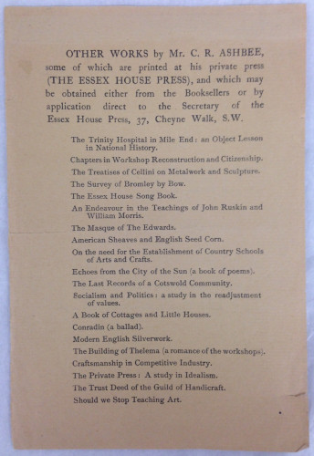 Home / Search the collection Search the collection Search Advanced Search Title Catalogue Number Object Type Select... archival book ceramic collage design drawing furniture glass metalwork oil photograph print printing block sculpture textile wallpaper watercolour Material Name (Artist, maker, organisation etc) Results per Page Select... 6 12 18 24 30 36 42 48 54 60 347 objects Of the Friendship of Amis and Amile Order Form for The Hamptonshire Experiment by C.R. Ashbee Page of ‘The Hobby Horse’, p.133, Vol.IV Pageant of British Empire, Souvenir Volume Phd Thesis – The Future Needs the Past: Remaking William Morris Through Contemporary Art Practice Poems by the Way Poems By the Way by William Morris, proof paper, p117-124 Poems Chosen out of the Work of Robert Herrick Poems Chosen out of the Work of Samuel Taylor Coleridge Popular Music of the Old Time; a Collection of Ancient Songs, Ballads, and Dance Tunes, Illustrative of the National Music of England. Popular Music of the Old Time; a Collection of Ancient Songs, Ballads, and Dance Tunes, Illustrative of the National Music of England. Pre-Raphaelite Painters Proof for The Golden Legend Proof of The Legend of Goode Wimmen for The Kelmscott Chaucer Proof of The Parlement of Fooles for The Kelmscott Chaucer Proof of The Romaunt of the Rose for The Kelmscott Chaucer Proof of The Tale of the Clerk of Oxenford for The Kelmscott Chaucer Proof of The Tale of the Clerk of Oxenford for The Kelmscott Chaucer Previous Page‹ previous 1 2 3 4 5 … 8 9 10 … 16 17 18 19 20 Next Pagenext ›